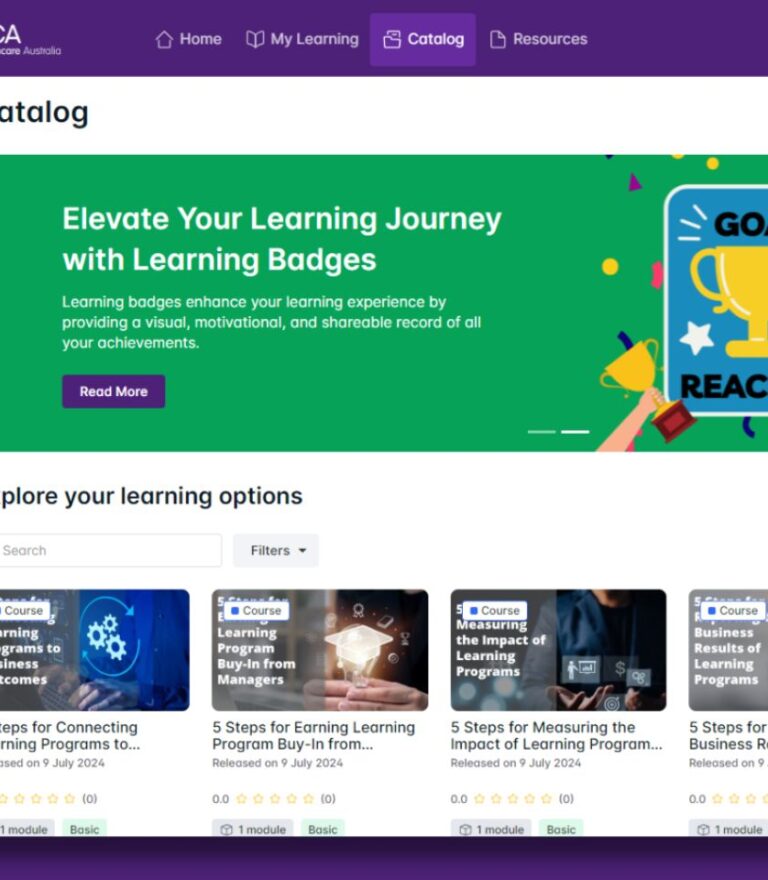 Access over 140 self-paced modules, covering 12 specialised healthcare domains. Our comprehensive e-learning library is designed to support healthcare professionals in expanding their knowledge and skills, with content regularly updated by industry experts. Whether you are looking to enhance specific areas or explore new ones, our flexible modules offer the convenience of learning at your own pace, anytime and anywhere in Australia.
